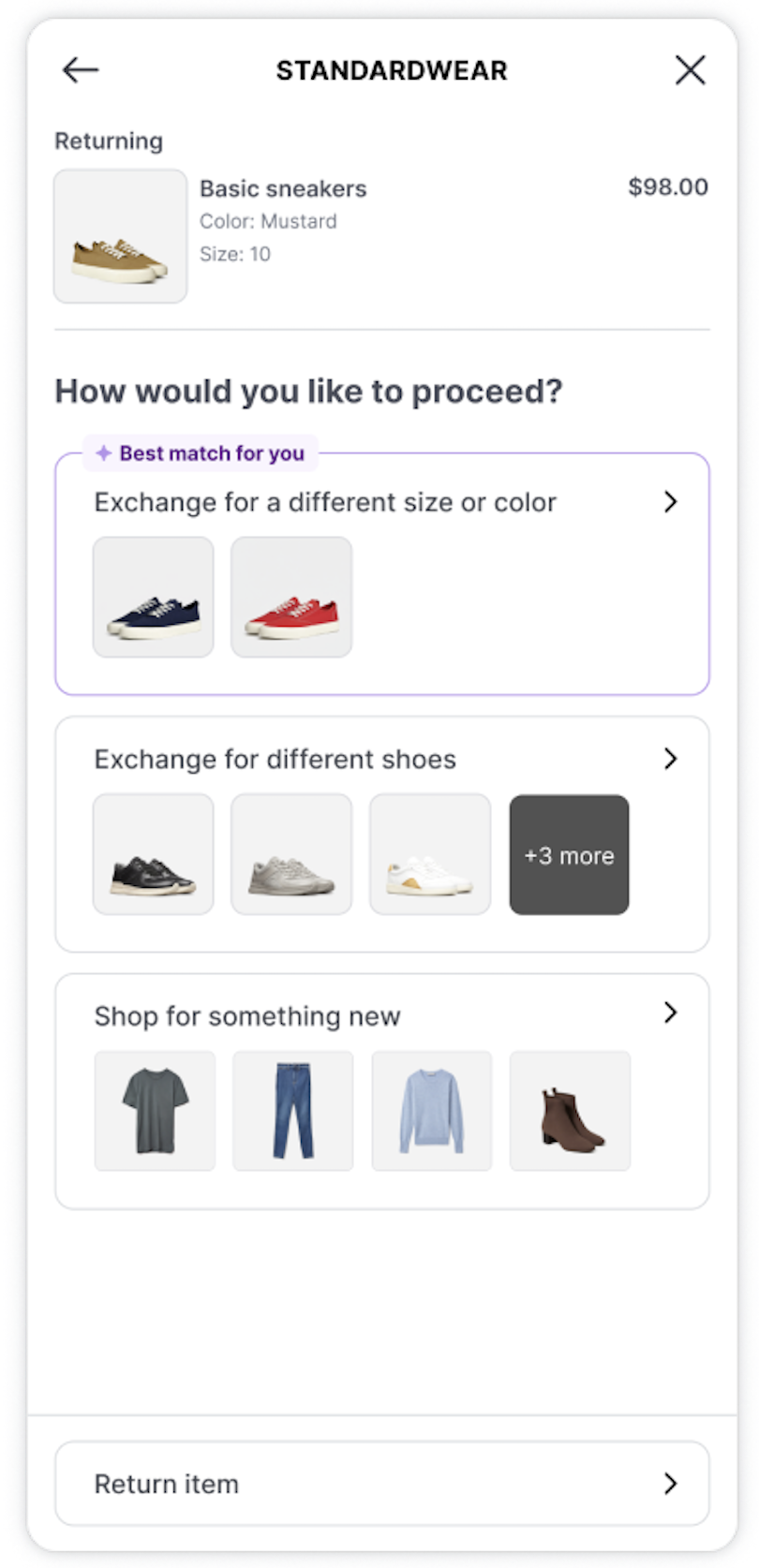 Improving the shopper experience — Recommendations are personalized to each shopper's return reason, reducing friction and confusion.