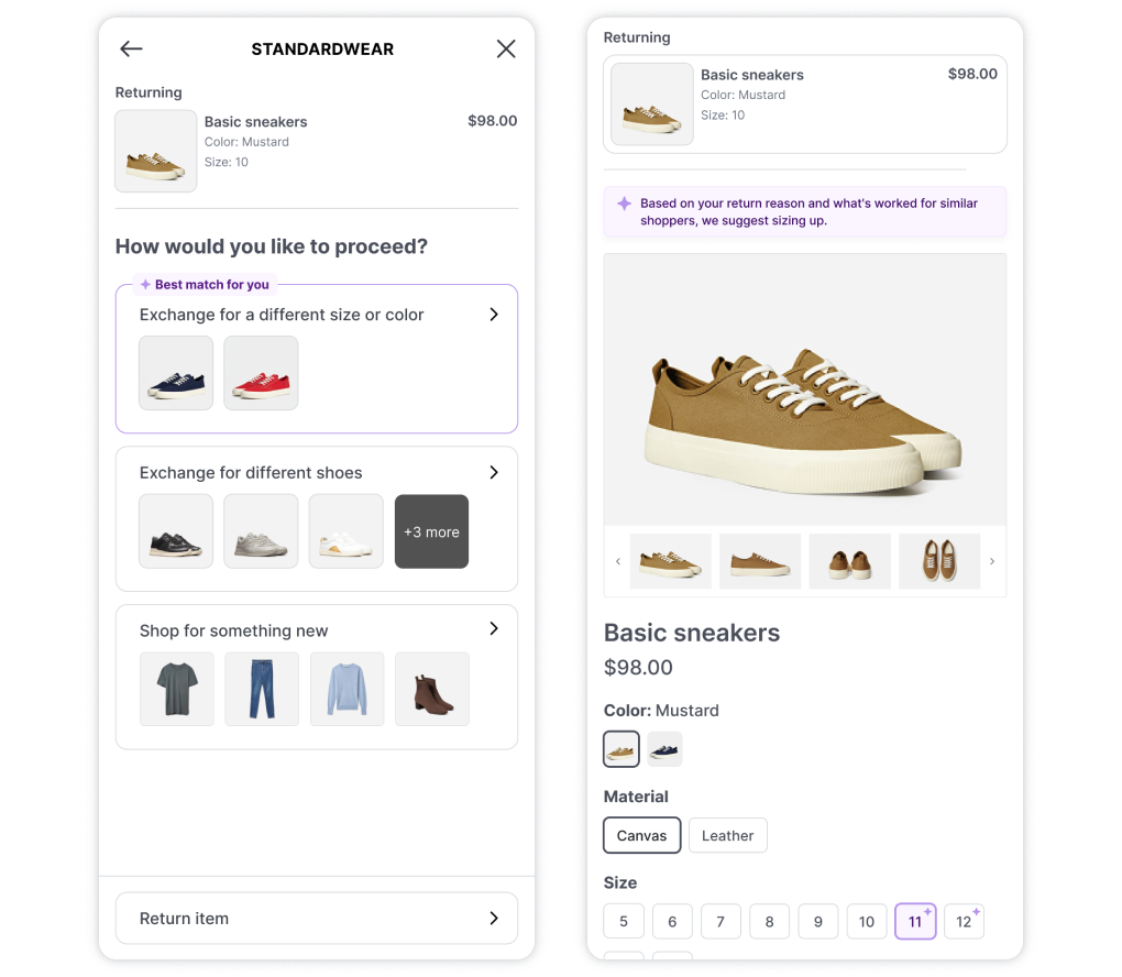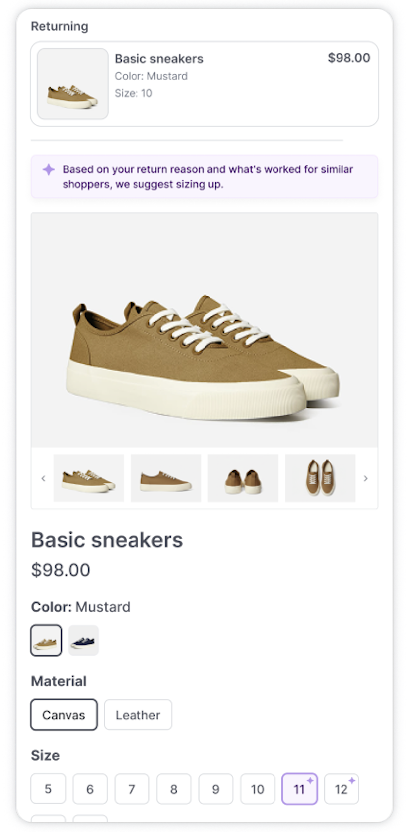 Reducing refunds and recovering revenue — Relevant, well-timed recommendations give shoppers confidence to exchange instead of refund.