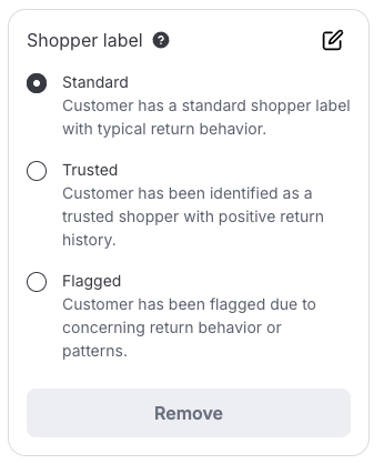 What happens if I remove a shopper label? Removing a label deletes it permanently — the history of a label is not tracked at this time. You can re-flag the same shopper with a new explanation at any time.