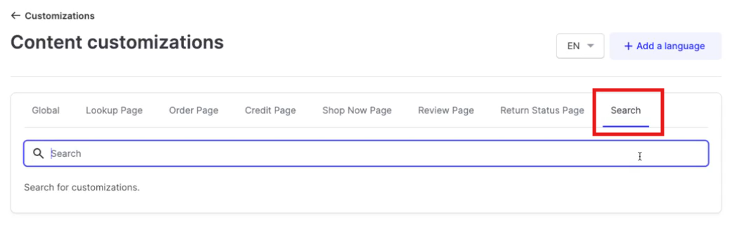 Using the Search feature on the far right is a quick way to locate where a certain word or phrase lives through the shopper return portal.