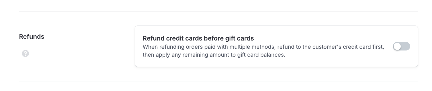 The new "Refund Credit Card before gift card" setting in General Settings allows merchants to prioritize refunds to credit cards, followed by gift cards and store credit.