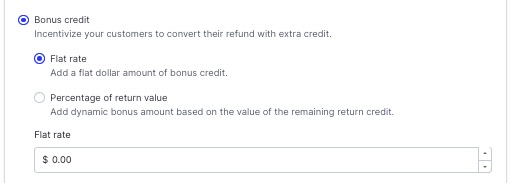 Flat rate: enter a flat dollar amount to give customers a set amount of credit (for example, $10.00).