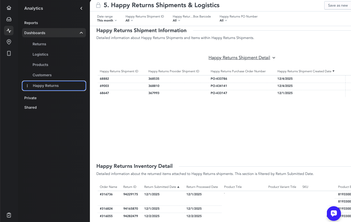 You can also view Happy Returns shipments via the Happy Returns dashboard in the Loop admin: