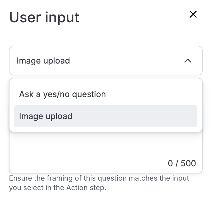 Ask questions or request photos - Ask the customer a question, if the customer selects 'yes' the action will trigger. Alternatively, request that the customer submit an image of the product they're returning.