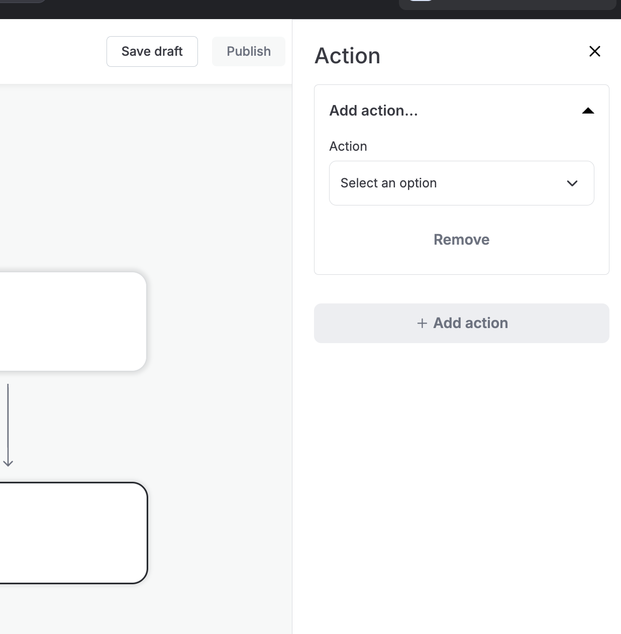 Once a workflow is built, merchants can saved it in a draft state or publish it live: