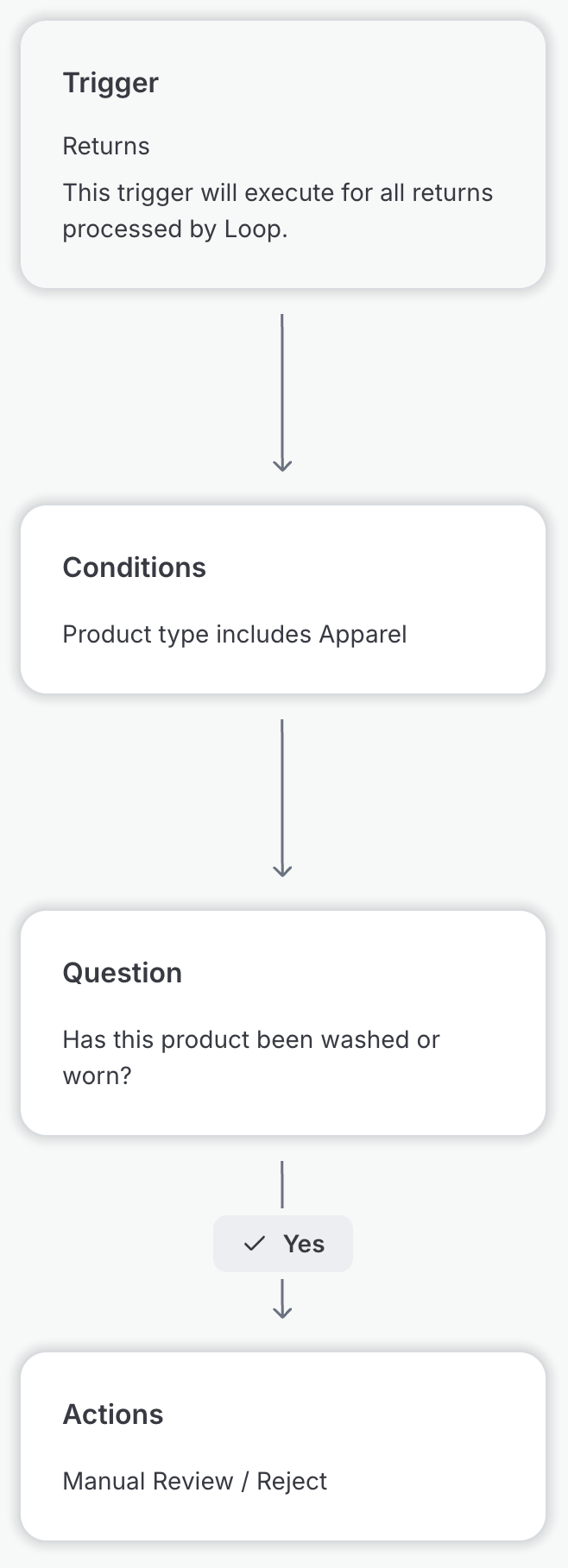 The availability of an extensive list of Conditions and Actions in Loop's Workflows feature allows merchants to support a wide range of return rules and exceptions that fall outside of their typical return policy. Due to this extensive functionality of Workflows, a high level of complexity is introduced when certain Condition + Action combinations are used, or when multiple Workflows are enabled, and can result in conflicting outcomes that impact and potentially hinder or prevent the intended functionality.