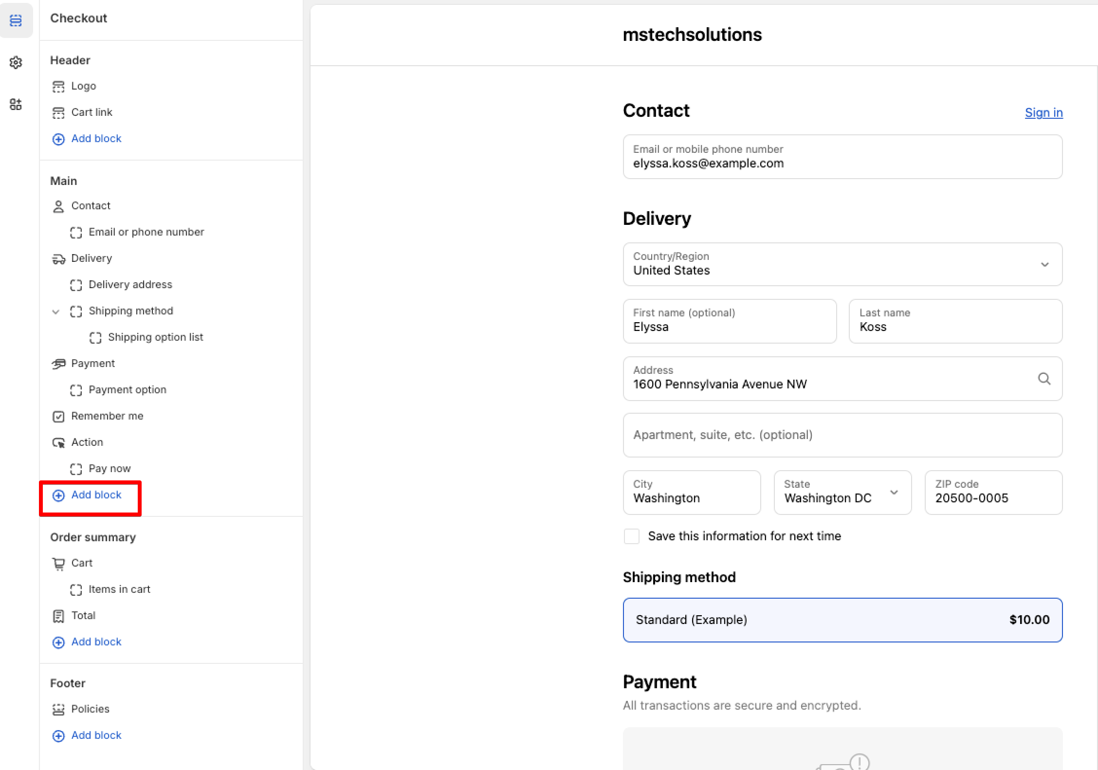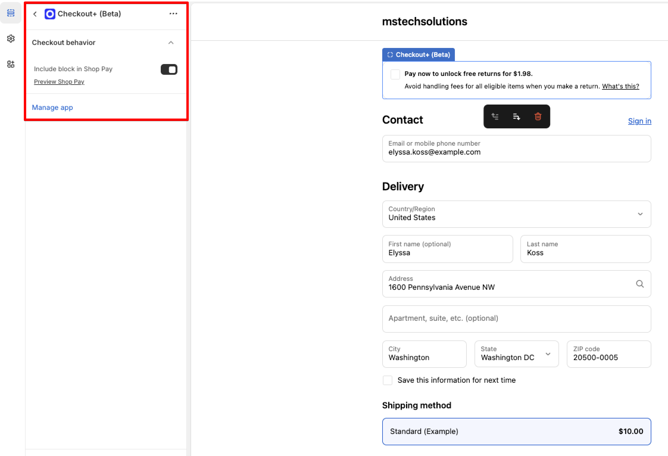 Optionally, click the Preview Shop Pay link to see a preview of how the Checkout App Block will appear in Shop Pay.
