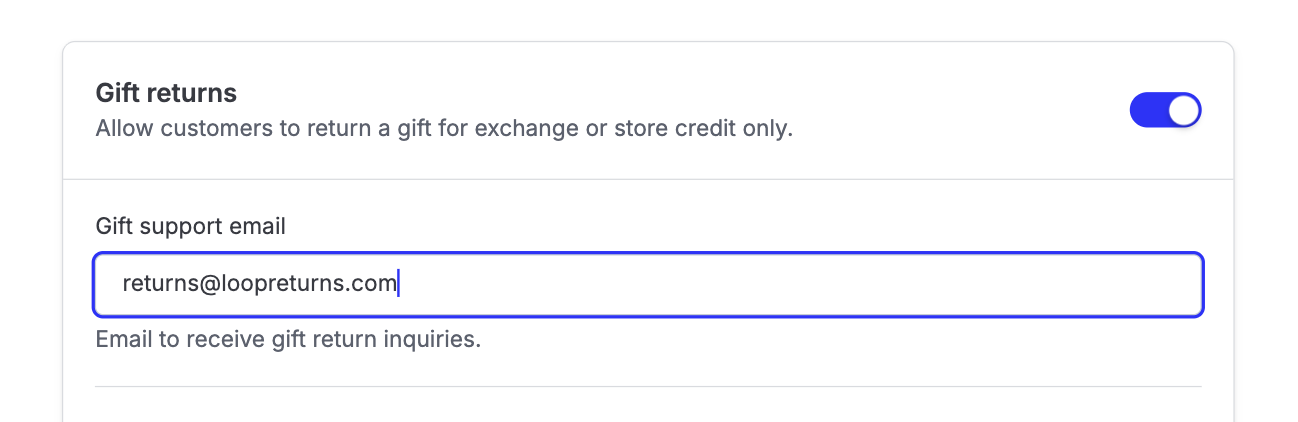 Note: The Loop team is actively working to find a solution to this limitation, but for now merchants who use Native Exchanges should keep gift returns toggled off within their general settings