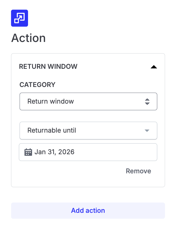 Rule can trigger based on if the tag was present at time of purchase OR time of return