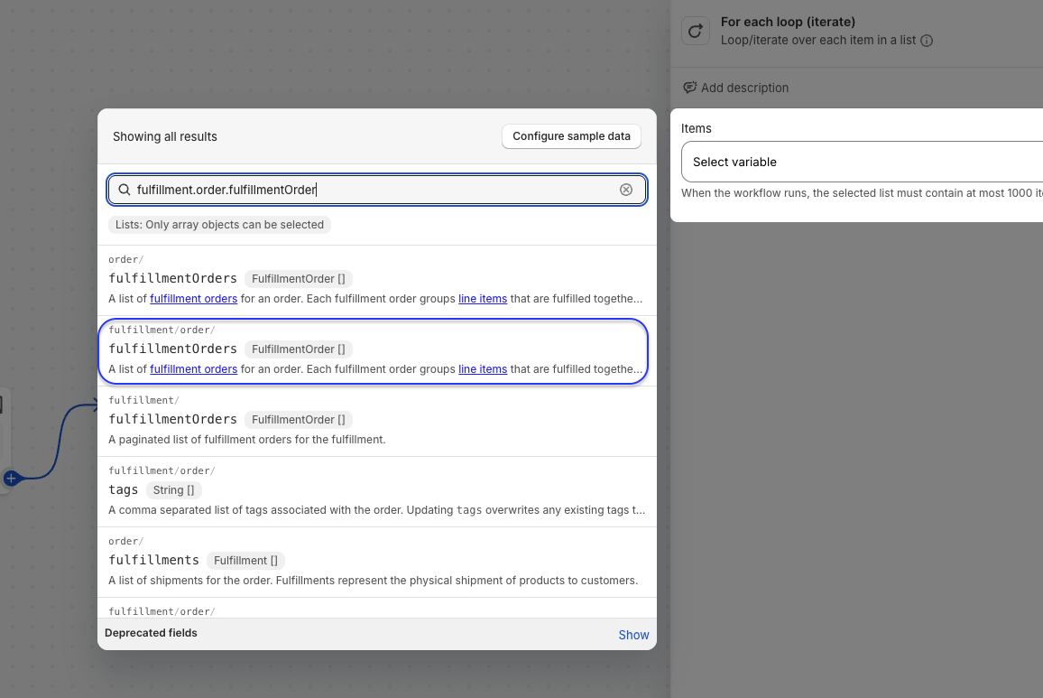 Click Select a list, then search for fulfillment.order.fulfillmentOrder.