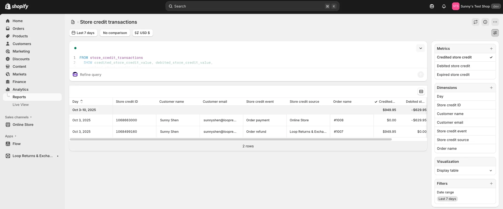 Are native store credit transaction captured in Shopify reporting? Yes, native store credit allows better financial reporting as the transaction is captured within Shopify reporting, and no order adjustments are required for credit issuance.