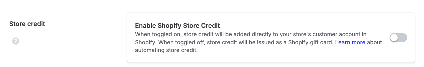 Enable the feature in Loop: Navigate to Policy Settings → General → scroll to Store Credit section → toggle on "Enable Shopify Store Credit"