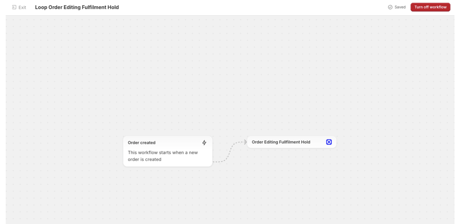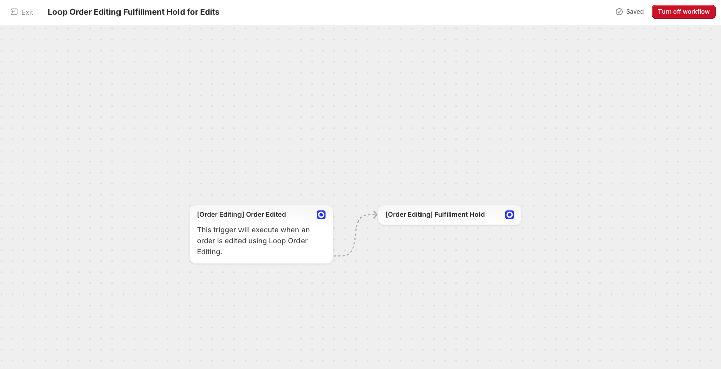 A Shopify Flow is used to ‘hold’ the order during the configured edit window in Loop admin