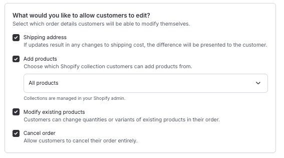 Determine what edits you would like to allow shoppers to make