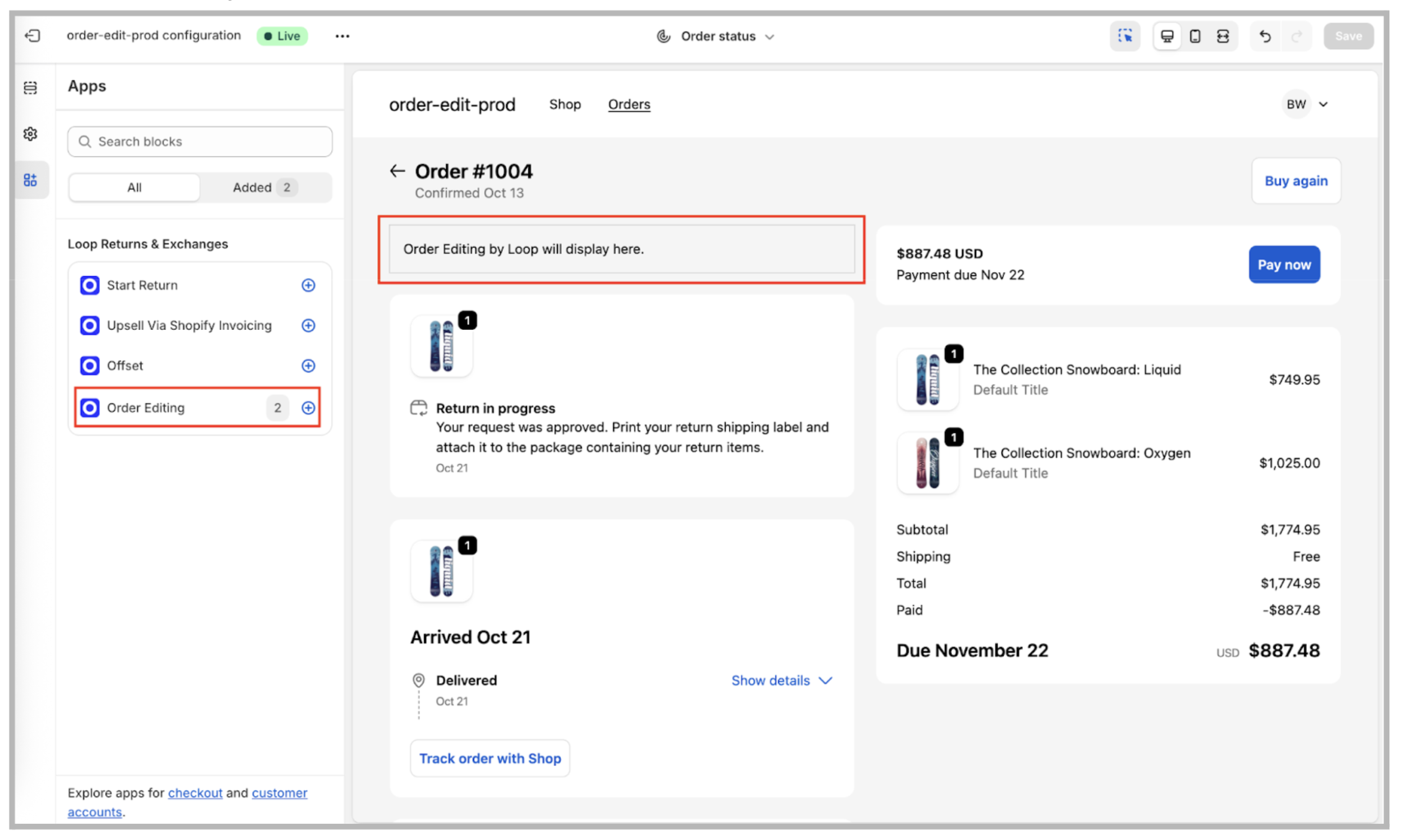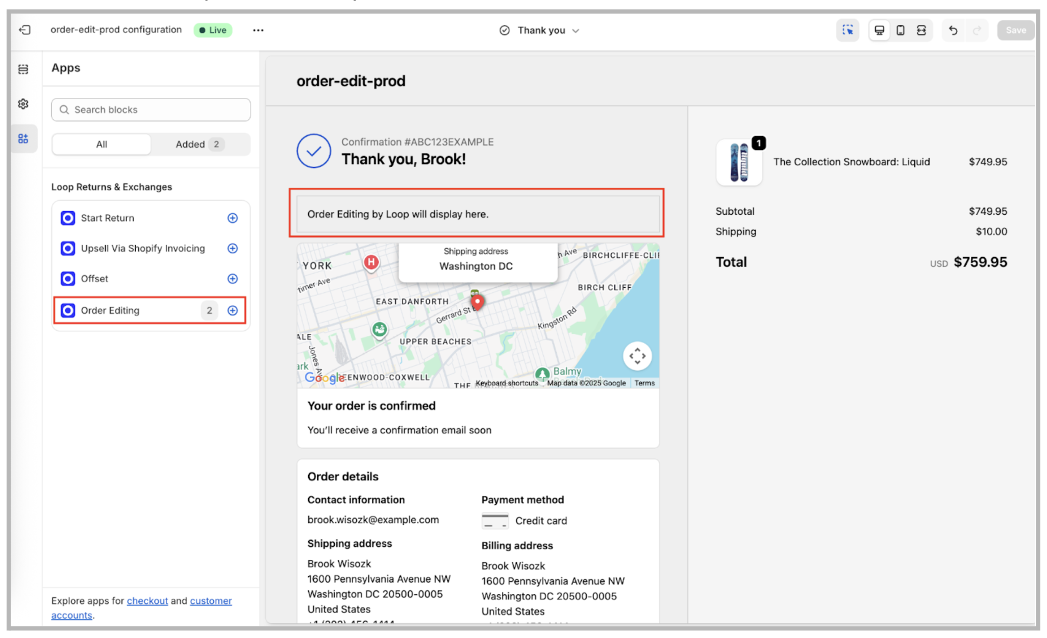 Note: You are live with Order Editing once the app is added to these pages in Shopify and the Shopify Flow has been turned on.