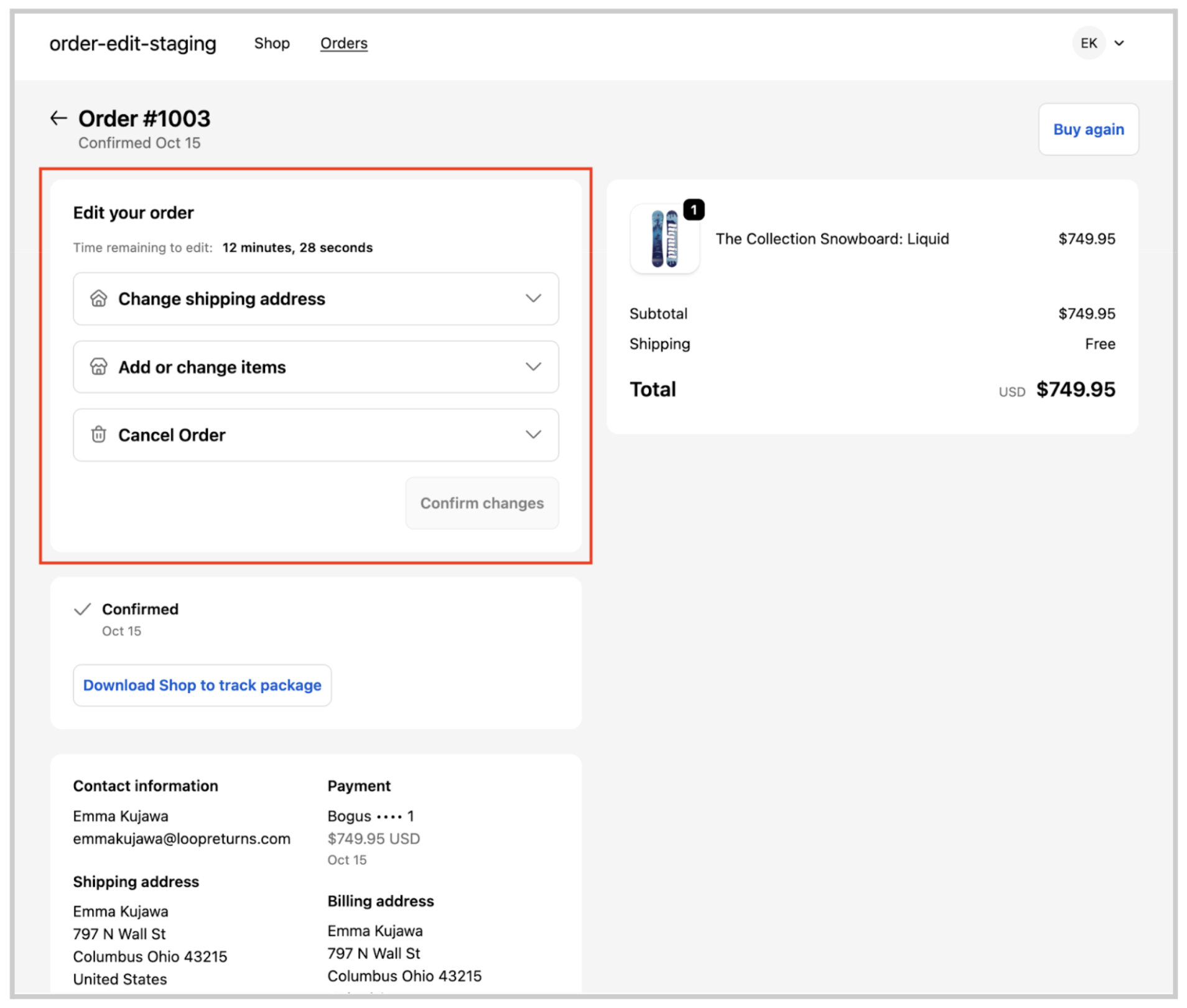 This video will walk you through a demo of the customer experience of editing an order after placing it in Shopify