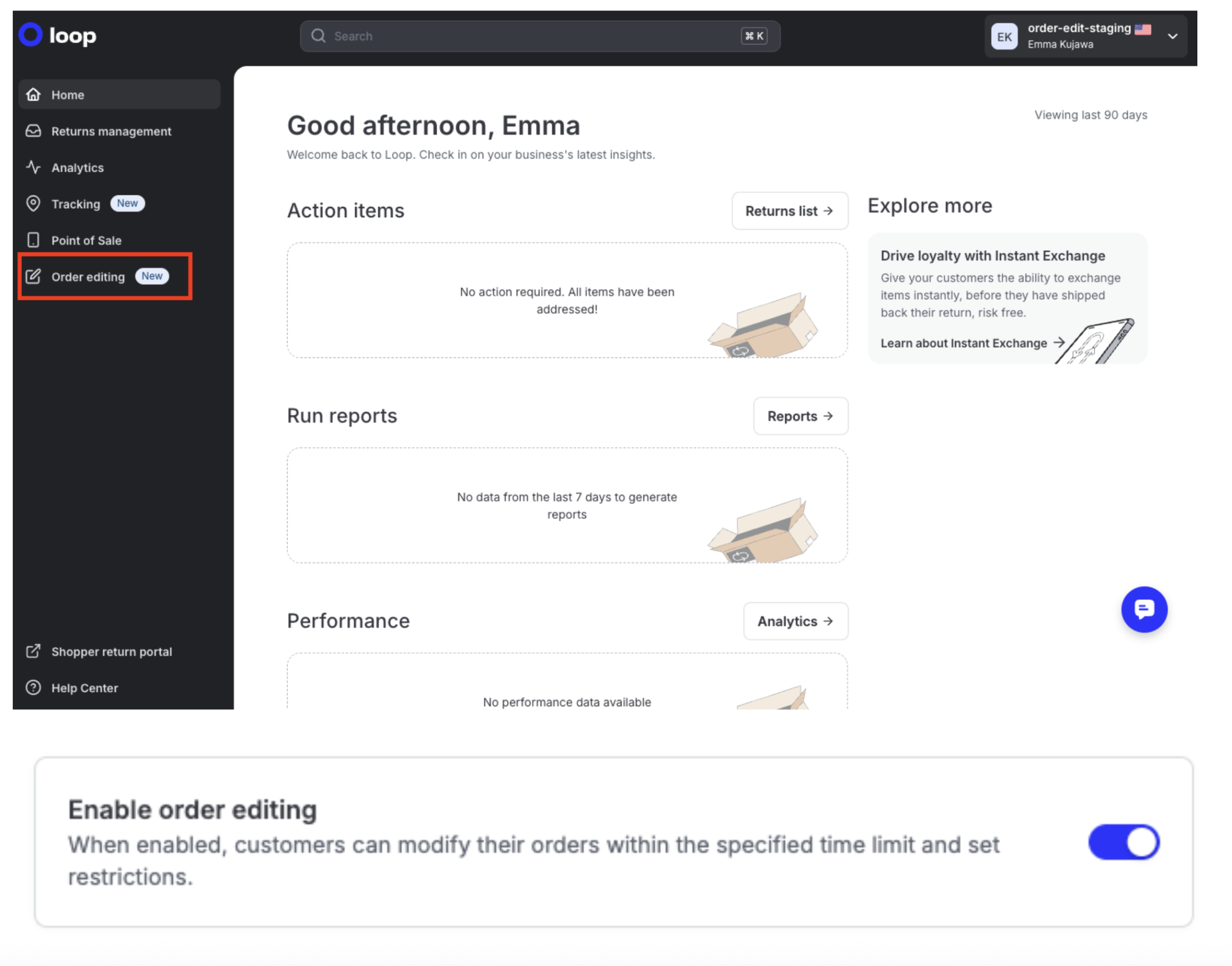 Toggle on the Enable Order Editing setting from within the Order Editing page in your Loop admin