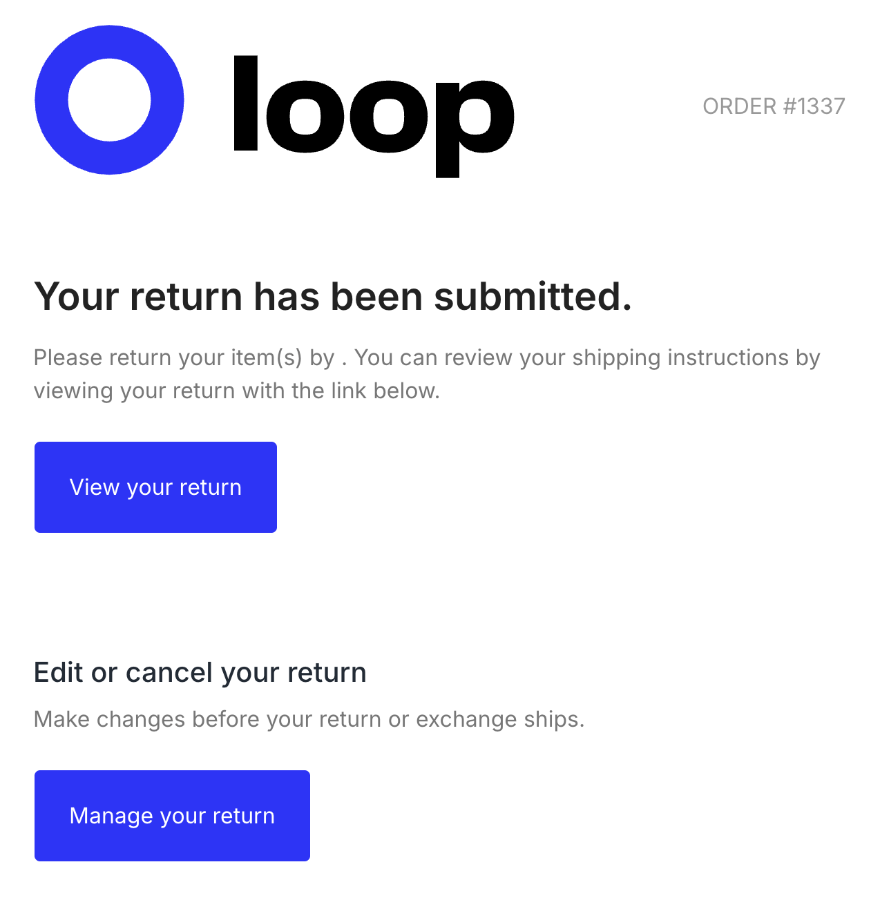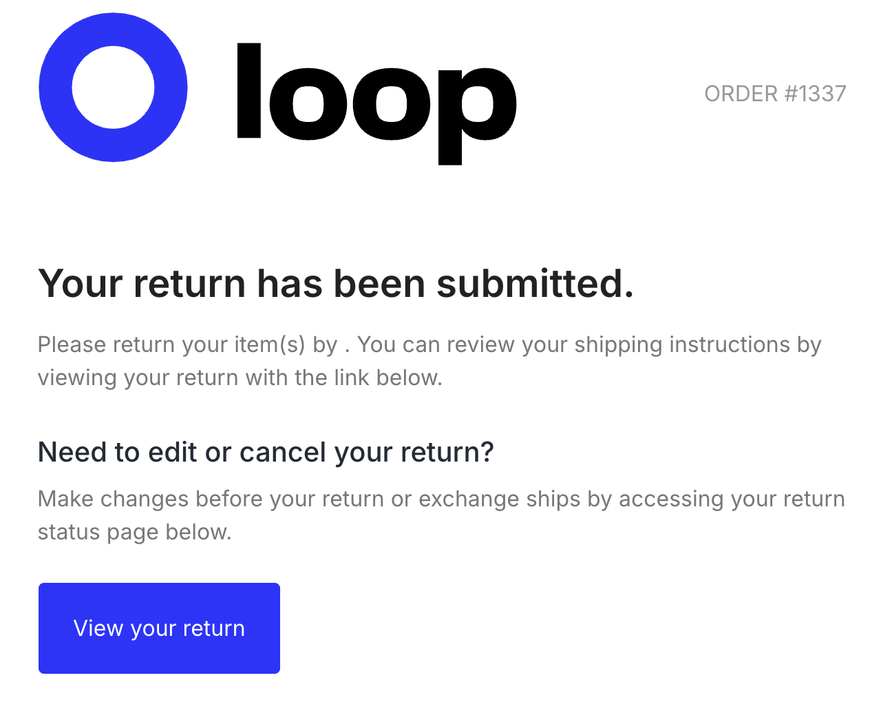 This configuration adds messaging to your return confirmation email that explicitly tells customers they can edit or cancel their return. You can choose between two approaches: