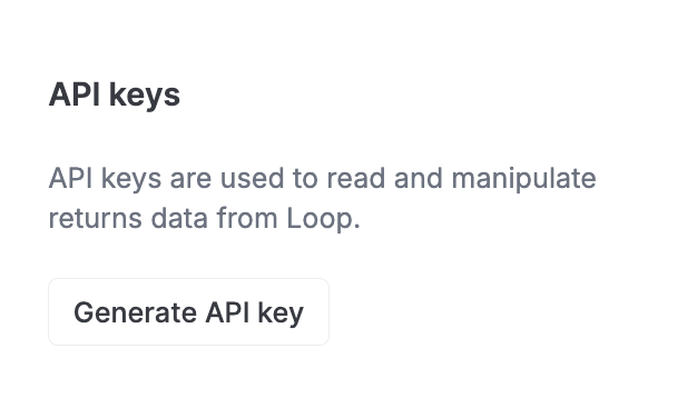 In the Loop Admin, navigate to Returns management > Tools & integrations > Developer tools.