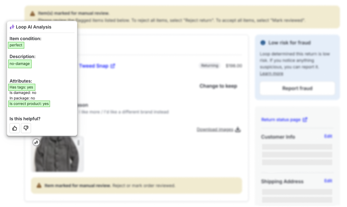 AI Image Protection is enabled for all Loop merchants and works automatically on any return with photo uploads.