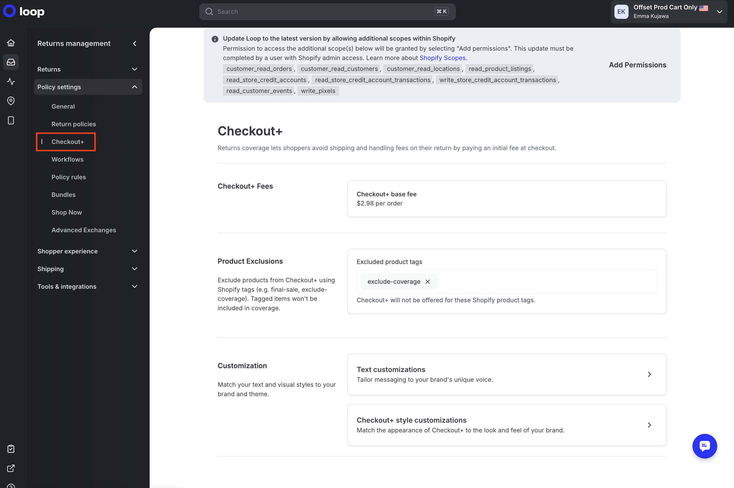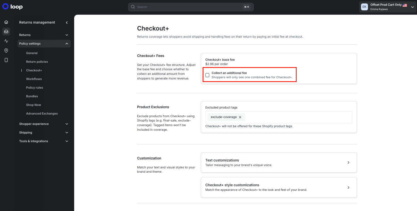 Any fee changes made in Loop Admin will automatically sync to Shopify